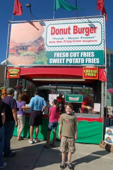 Speaking of state fairs in the South . . . I was gonna try one of these, but the line was too long! I am talking about the Donut Burger (made with Krispy Kreme donuts) at the Kentucky State Fair. For picture.