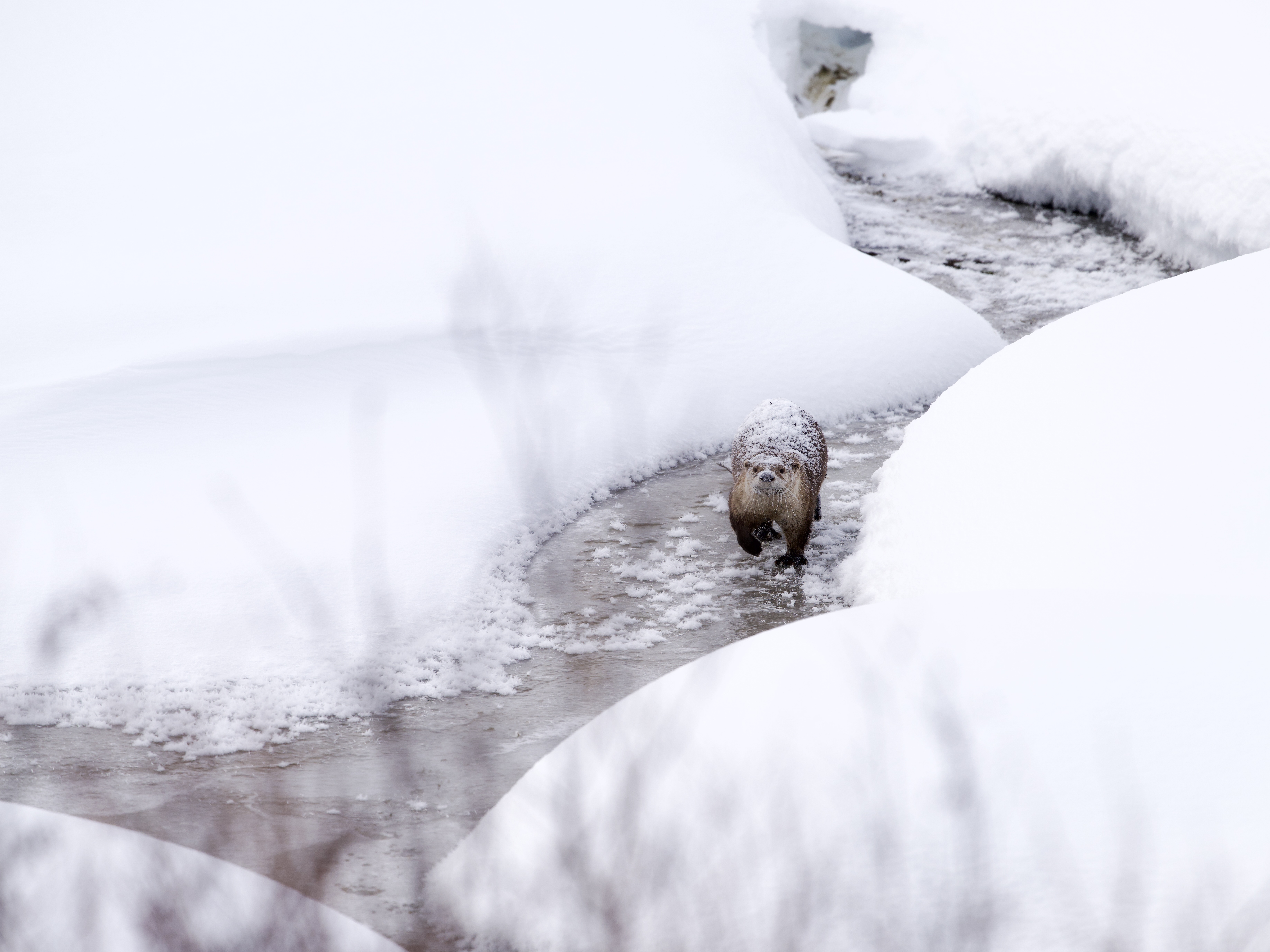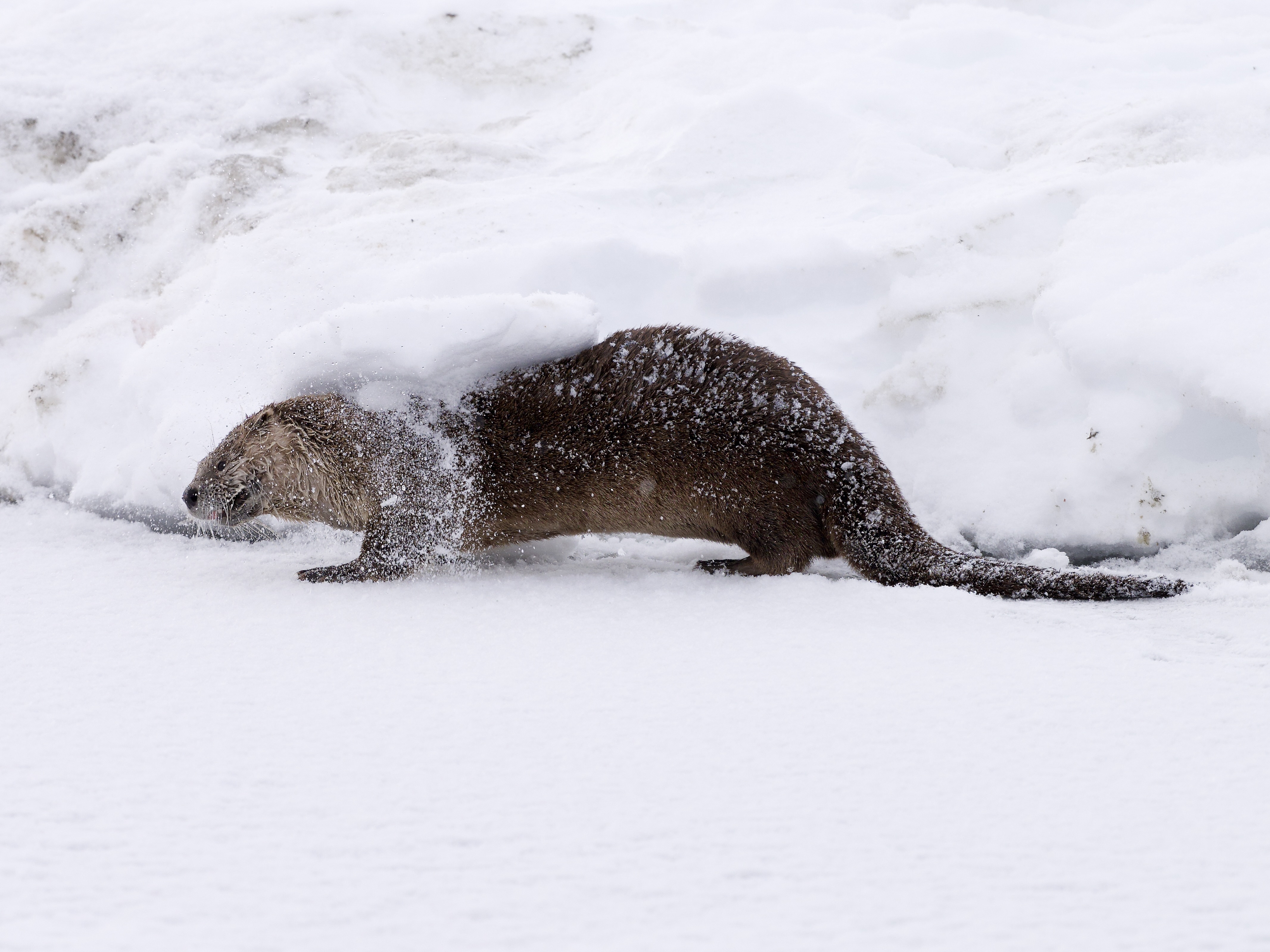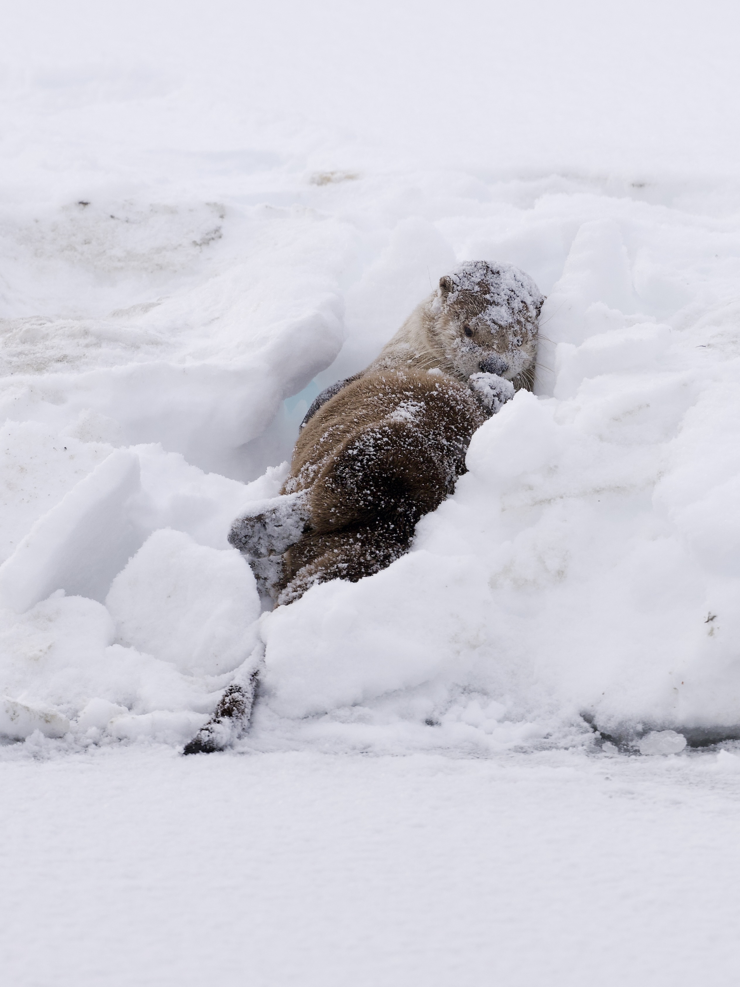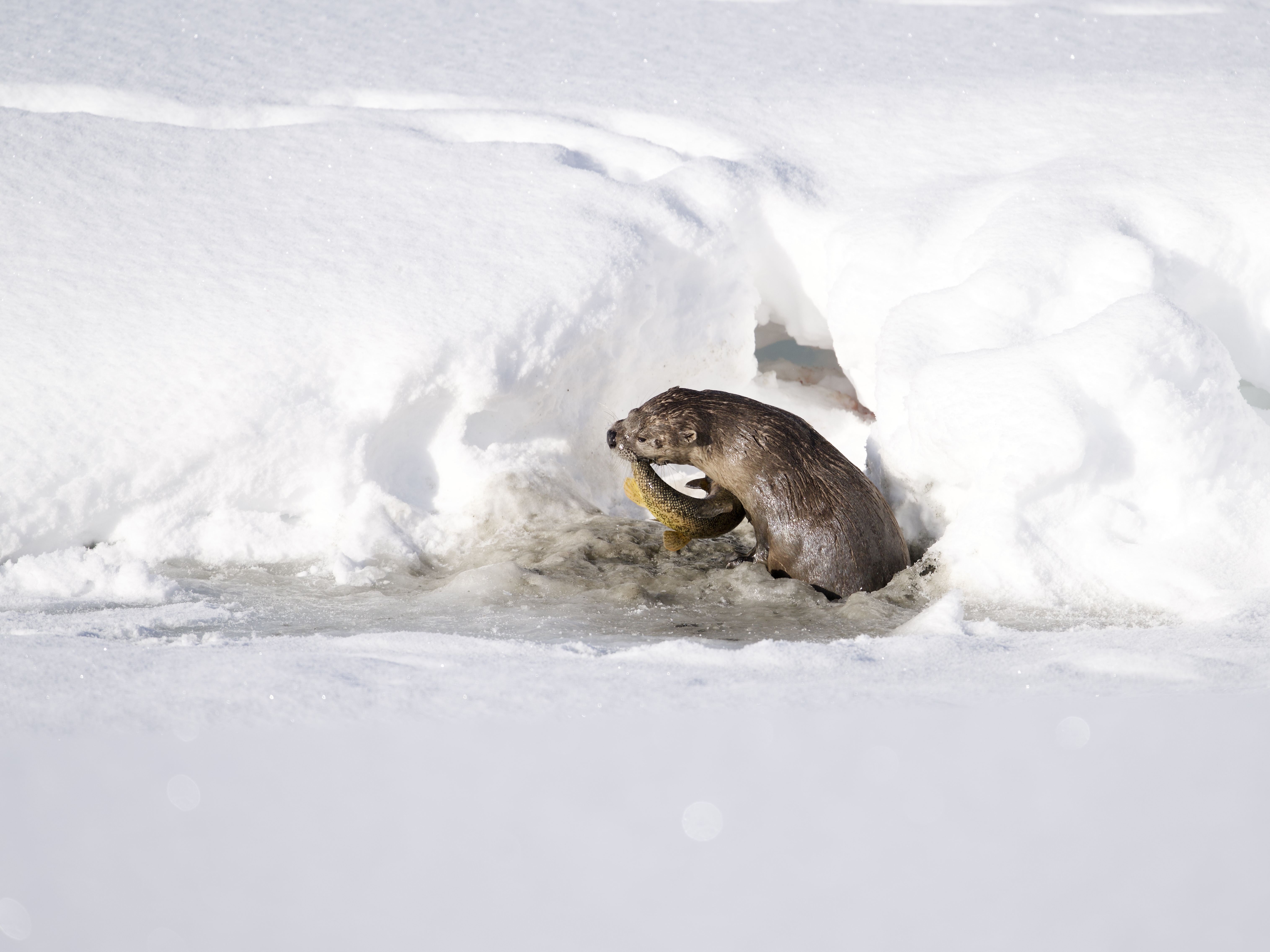 After eating a large Utah sucker fish, the river otter dove back into his ice hole and emerged with another, which he also quickly consumed. He must burn a lot of calories!: