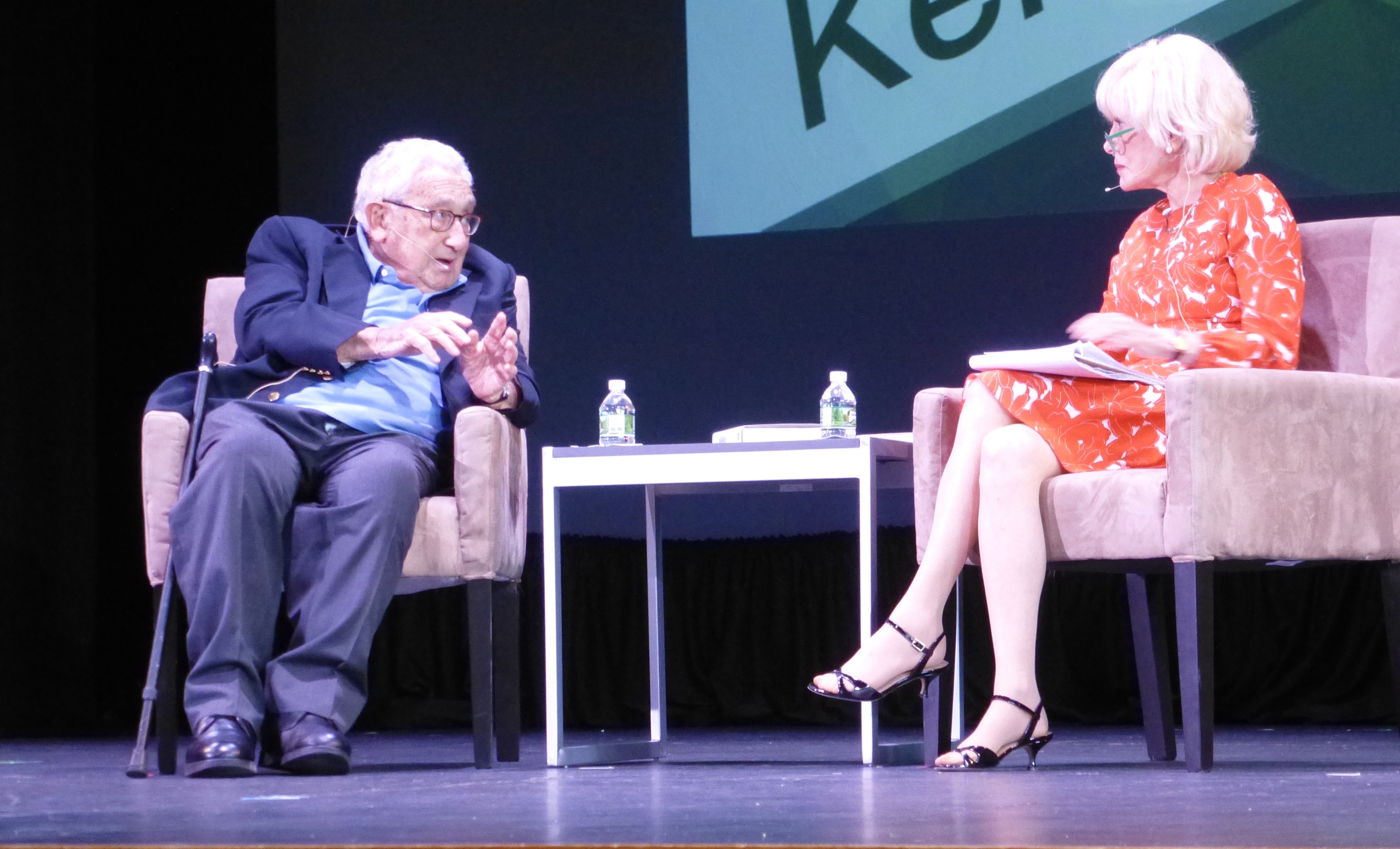 Below: the discussion a couple of hours later. (Kissinger was 95 at the time, but of course has since crossed the Rainbow Bridge). Although Lesley asked good questions, Kissinger rambled on in a barely audible voice, and it wasn’t enlightening.