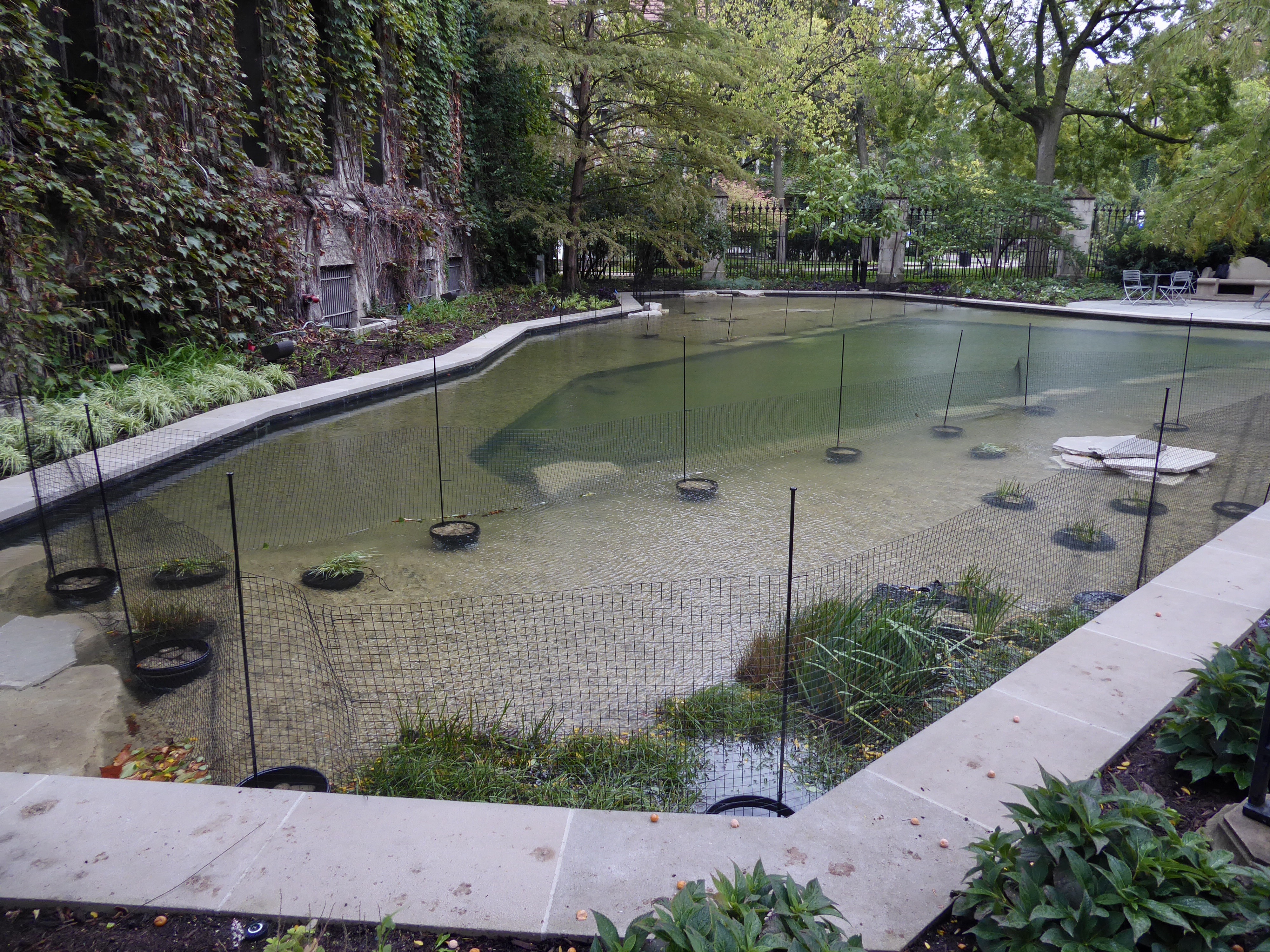 Microfauna (snails, microbes, worms, etc.) have been added to the pond as seeds to allow it to develop, and to provide food for turtles and ducks. I think they’ll put the turtles back next spring.