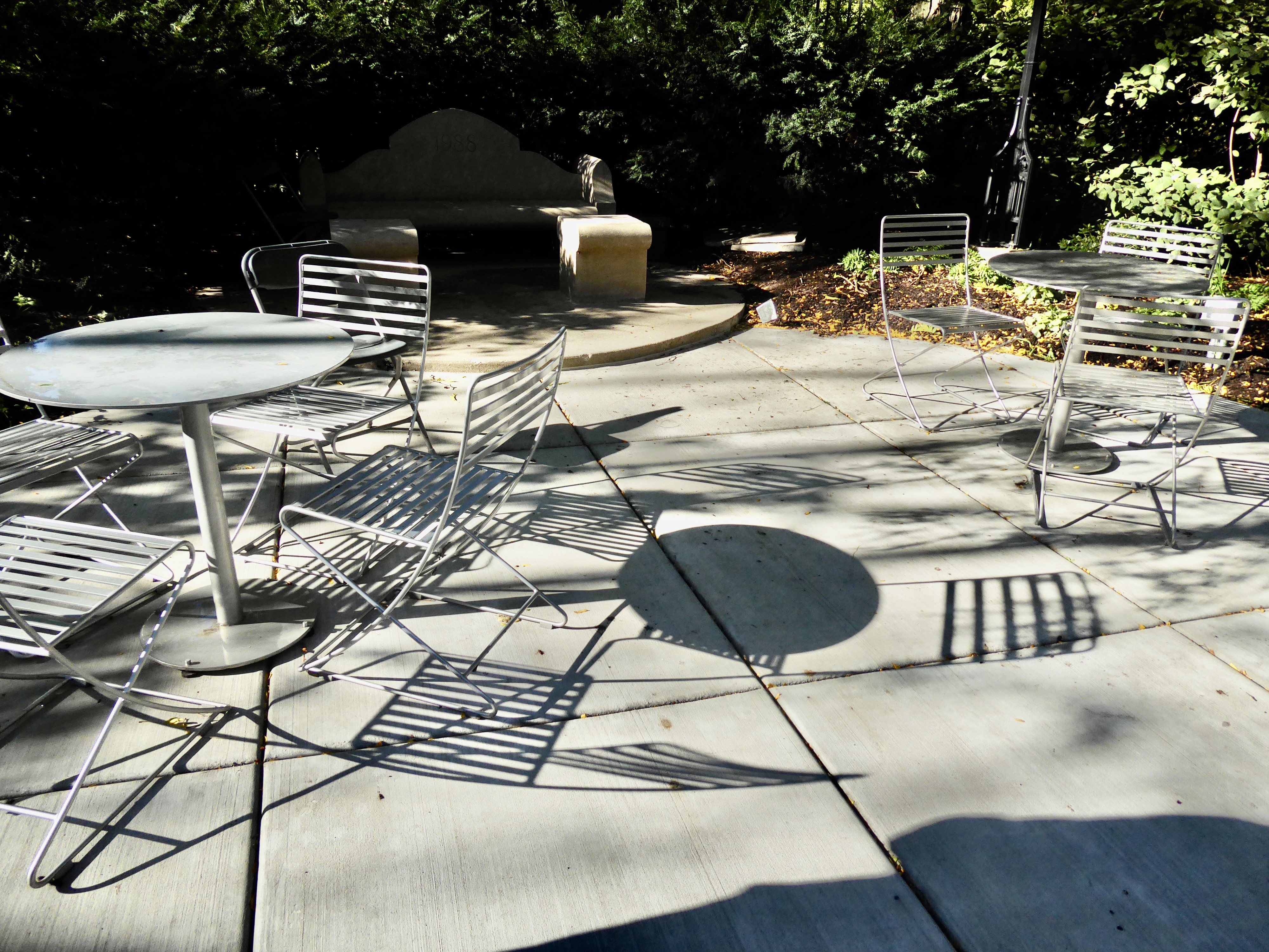 The old cement bench, good for duckwatching, is now supplemented with some tables and chairs:
