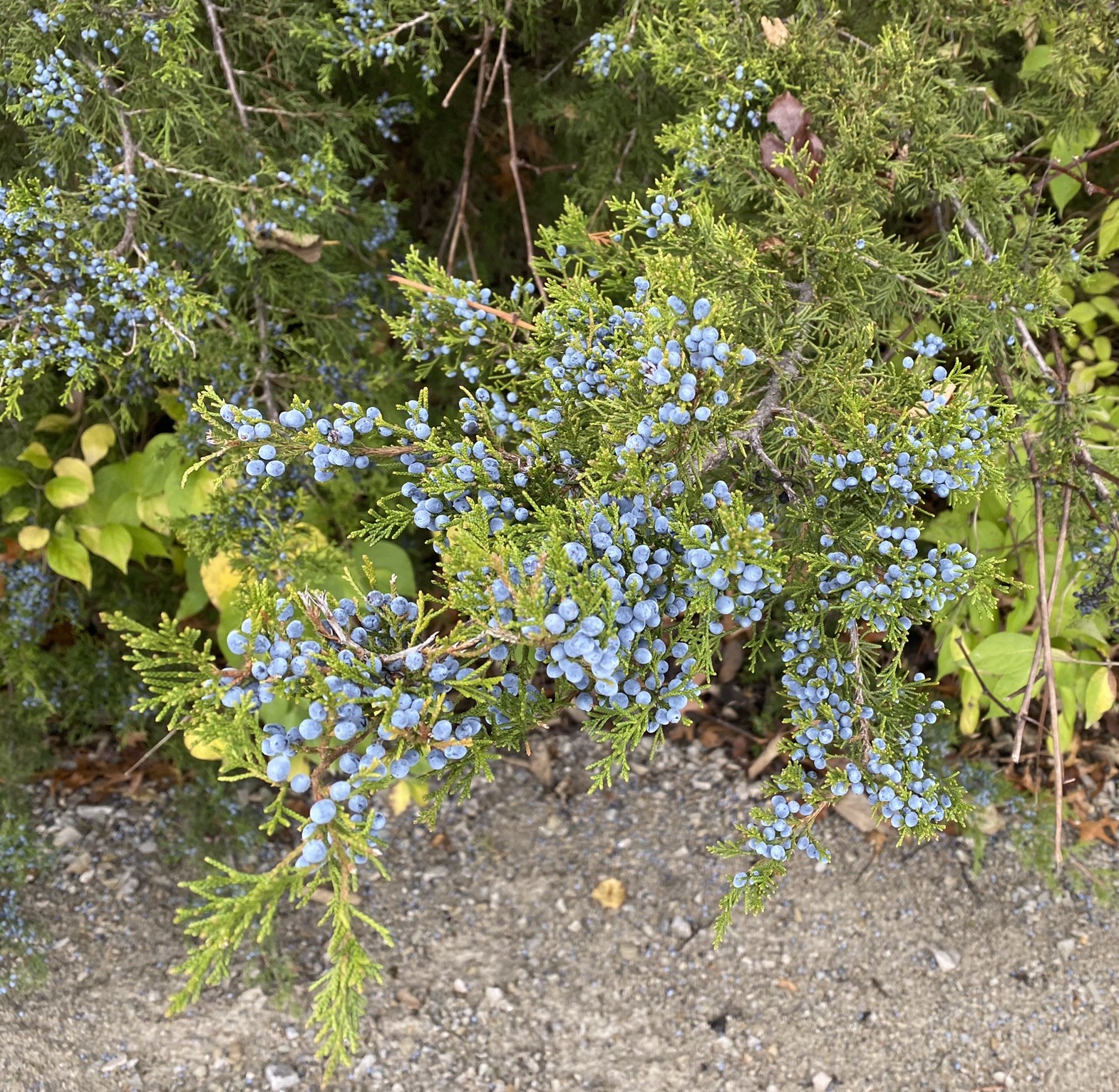 Juniper berries (Juniperus communis) in December along the Nickel Plate Trail, Fishers, Indiana, a railroad turned trail:
