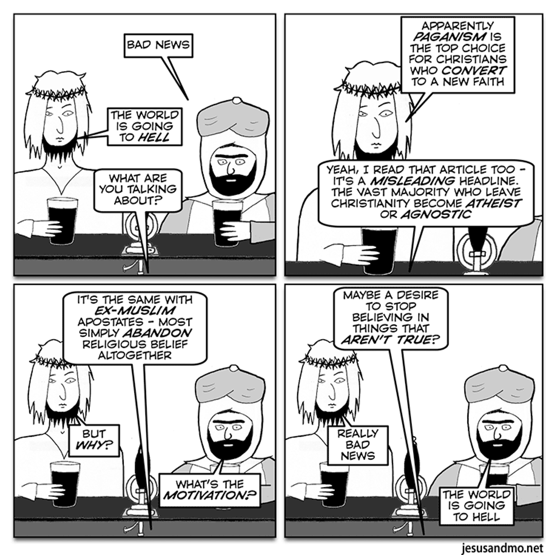 Today’s Jesus and Mo strip, called “abandon,” came with this note: