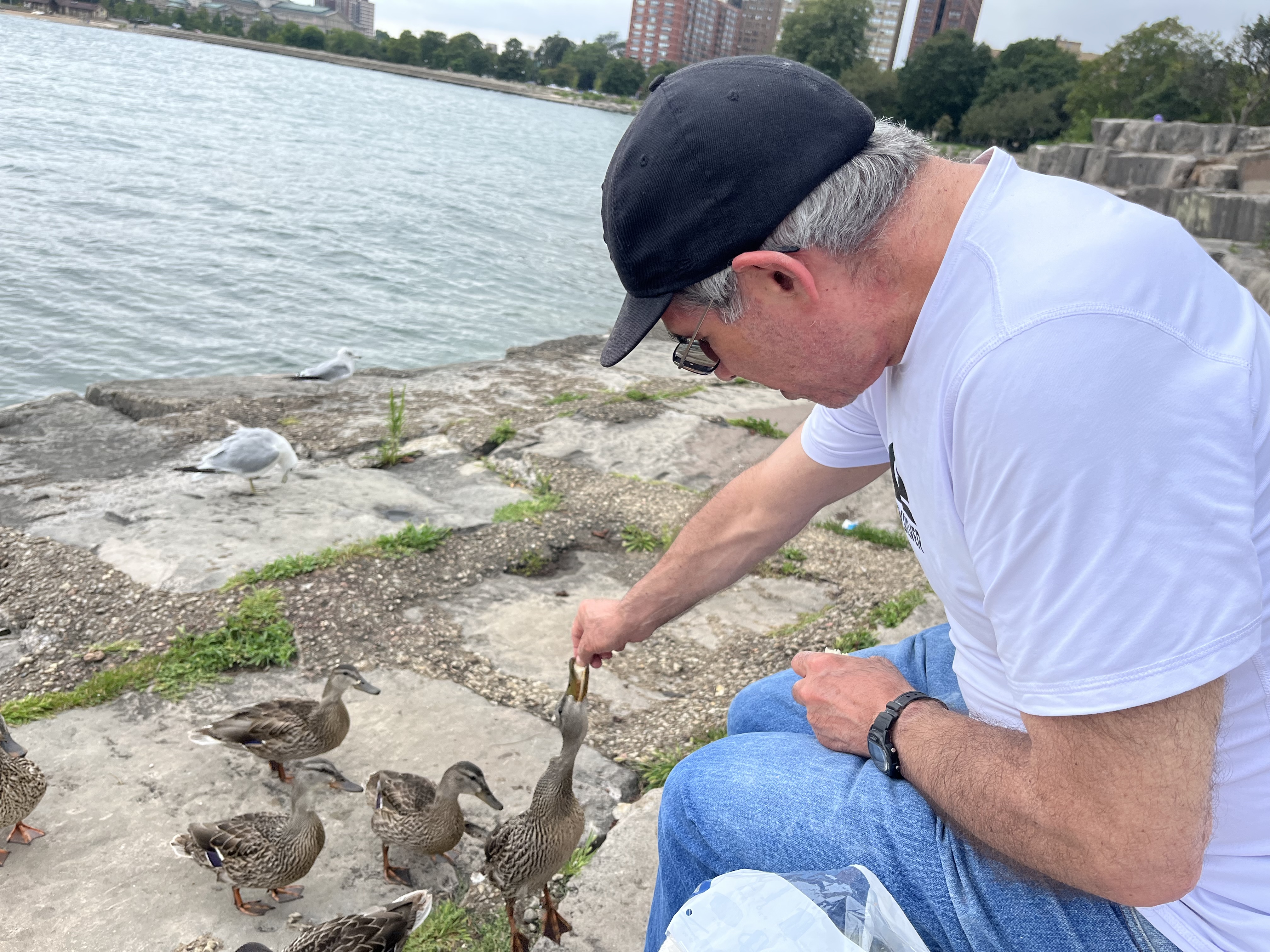 I just schlepped down to the pond with my bag of duck food, hoping against hope that there would be someone to feed. And then I schlepped back to work, with not a pellet dispensed. I am depressed and wonder if the pond will ever be full of life like it was before the renovation. There are supposed to be fish and turtles, too, but they haven’t put them in, though someone’s put one goldfish in the pond. I hope it’s not hungry.
