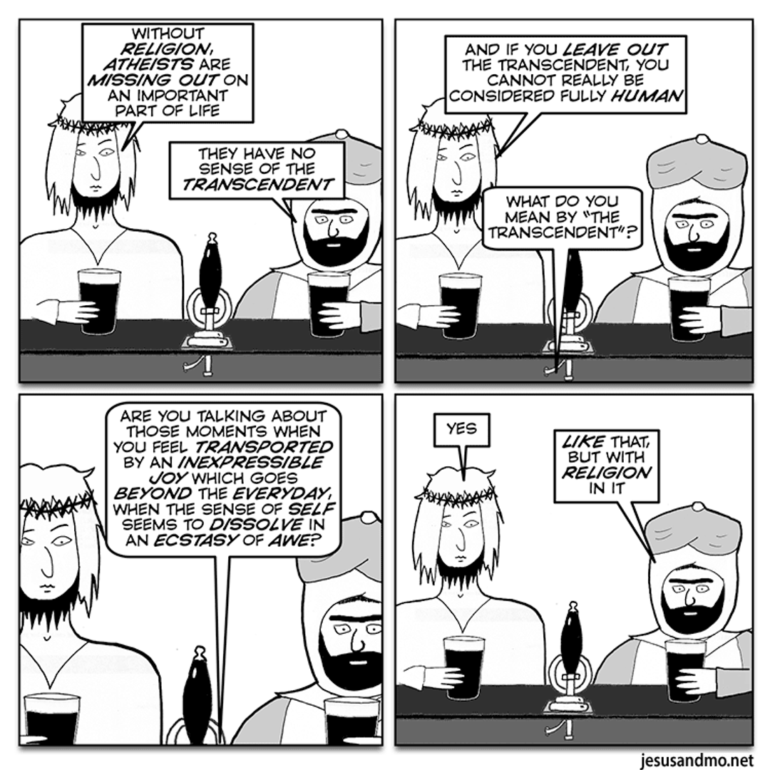 Well being and morality. In a section called “knowledge is more meaningful than ignorance and superstition,” P&T argue that religion did not improve people’s well being in the old days, but simply justified bad stuff. They argue that humanism provides a better grounding for morality than does religion, and who would argue otherwise? After all, even religious people pick and choose their Biblical morality, implicitly assuming that things are good because God approves only of what is good, implying that the “good” pre-dates the pronouncements of God. Quotes (all indented):